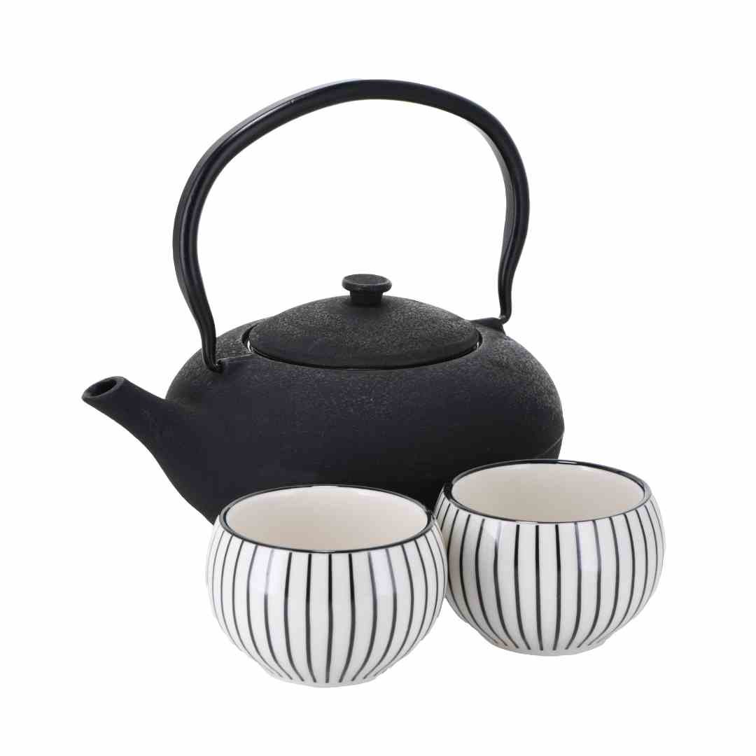 El set se completa con tazas de porcelana de 110 ml, adecuadas para servir té caliente y mantener una estética armoniosa con la tetera.